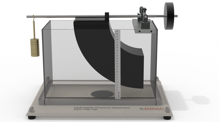 This equipment allows the moment caused by a fluid thrust on a wholly or partially submerged plane surface