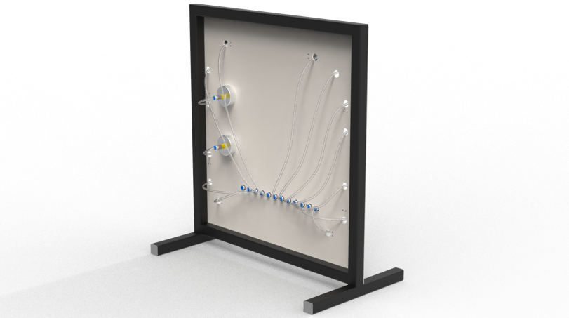 This experimental unit consists of a pipe section containing different segment fittings along the loop as well as