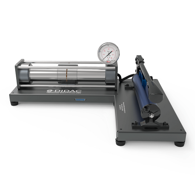 This experimental unit is used to investigate stresses and strains in a thin-walled vessel subjected to internal pressure. Pipes, pressure vessels, steam boilers etc. are classified as thin-walled vessels during design. The principal stresses play key role in calculating and designing these vessels. The stresses and strains being generated in a vessel cannot be directly measured but are determined by measuring the strains on the surface using strain gauges.