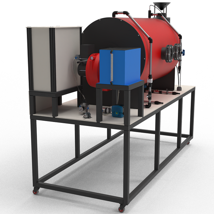 Training unit is designed for student operation by including several safety features. A hand-held digital gas analyzer provided allows the O2 content of the flue gas to be resolute and this in turn allows calculation of the air /fuel ratio, excess air and combustion efficiency.