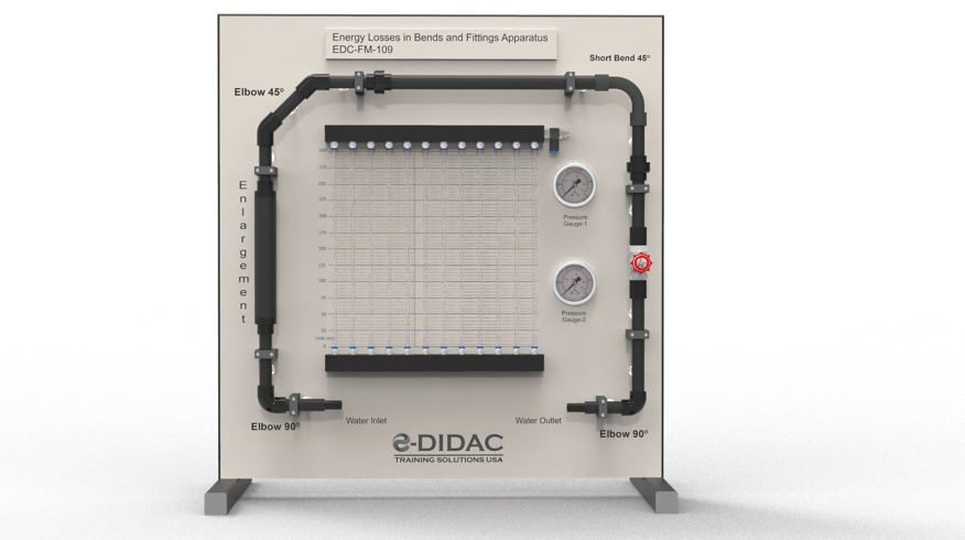 flow control valve allows students to observe the pressure losses at different flow rates.