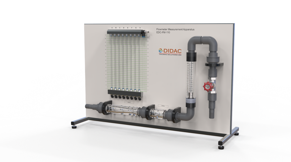 This experimental unit consists of a pipe section containing three flow measurement devices, Rotameter, Orifice