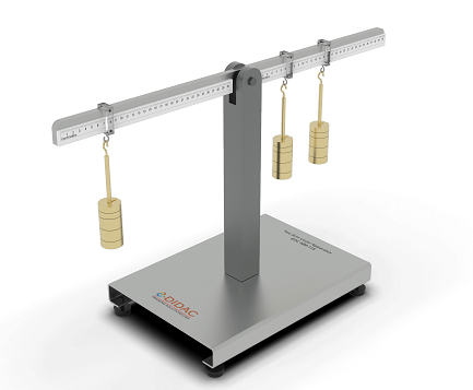 This apparatus contains a beam mounted at it center to represent a two-arm lever. Weights can be placed on the lever at any distance. Equilibrium is attained by moving the weights.