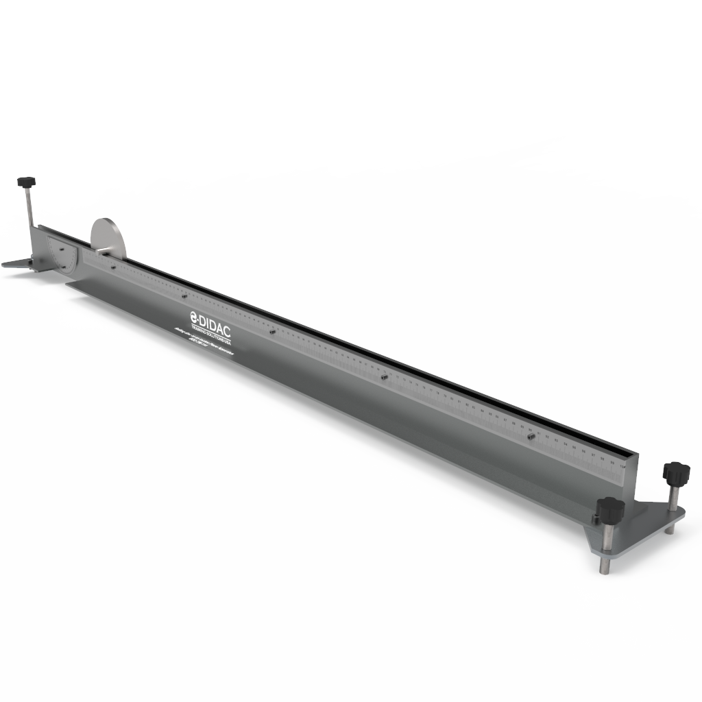 This apparatus is designed to determine the moment of inertia of disc through rolling action. Discs of various materials are used to determine moment of inertia. A metallic base with a three-point support is used as a base for the experiment; the different rotating masses are rolled down this plane. The inclined plane can be precisely aligned using integrated spirit levels and three levelling bolts. The angle of inclination is adjusted using an adjustment bolt. A 1000mm ruler is integrated directly into the inclined plane for measuring the distance.